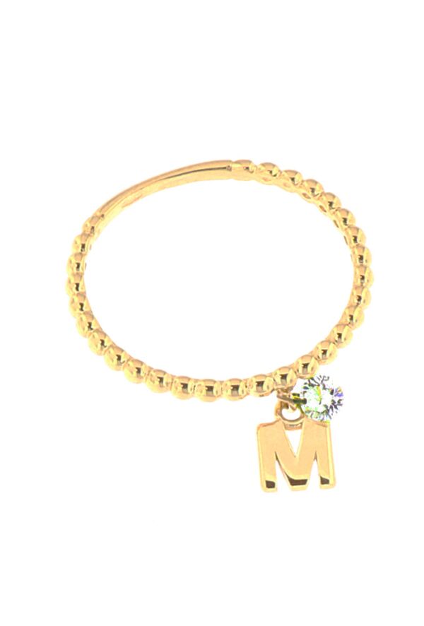 Anello con iniziale e diamante lab grown taglio brillante rotondo, realizzato in oro giallo 18 kt.