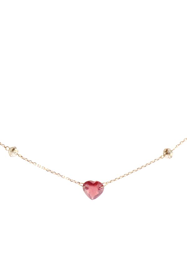 Girocollo in oro rosa 18 kt, con un rubino naturale taglio a cuore e 6 diamanti brown taglio a sfera sfaccettata.