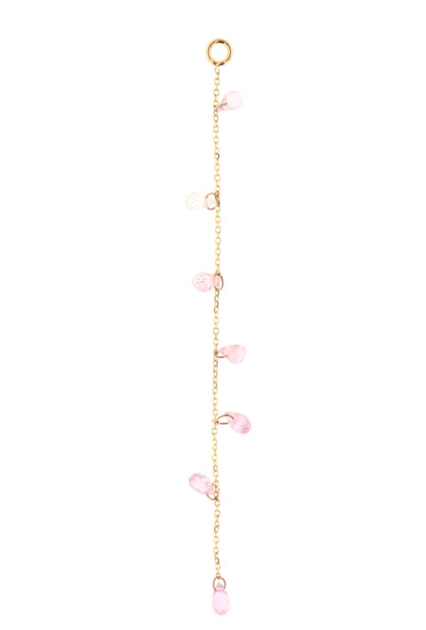 Charm per orecchino con cascata di zaffiri rosa naturali, realizzato in oro giallo 18 kt.