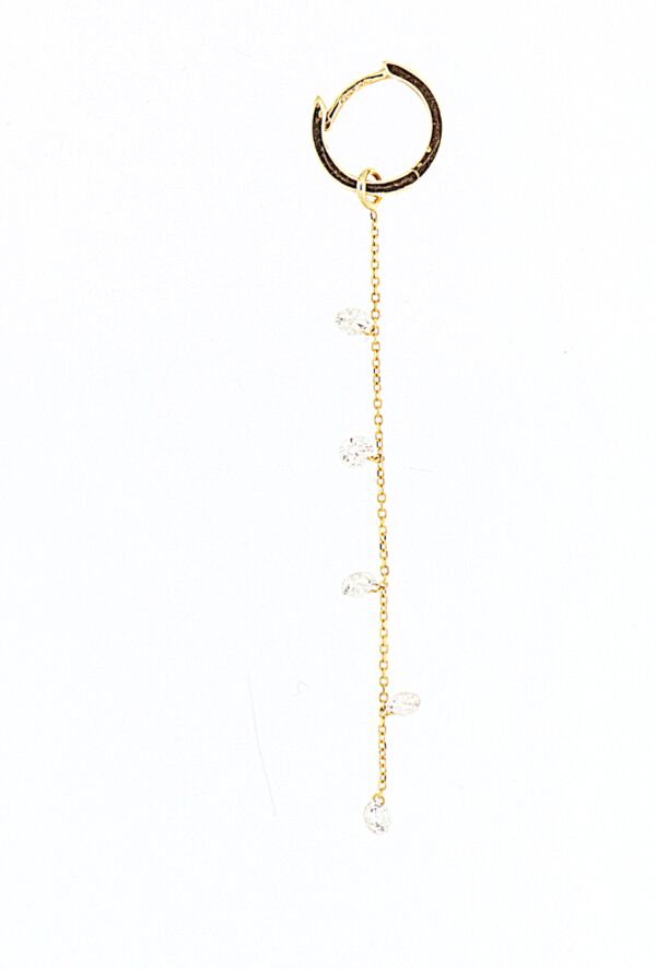 Orecchino a cerchietto con cascata di 5 diamanti lab grown taglio brillante rotondo, realizzato in oro giallo 18 kt.