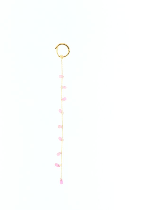 Orecchino a cerchietto con cascata di zaffiri rosa, realizzato in oro giallo 18 kt.