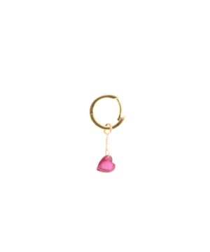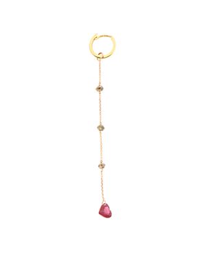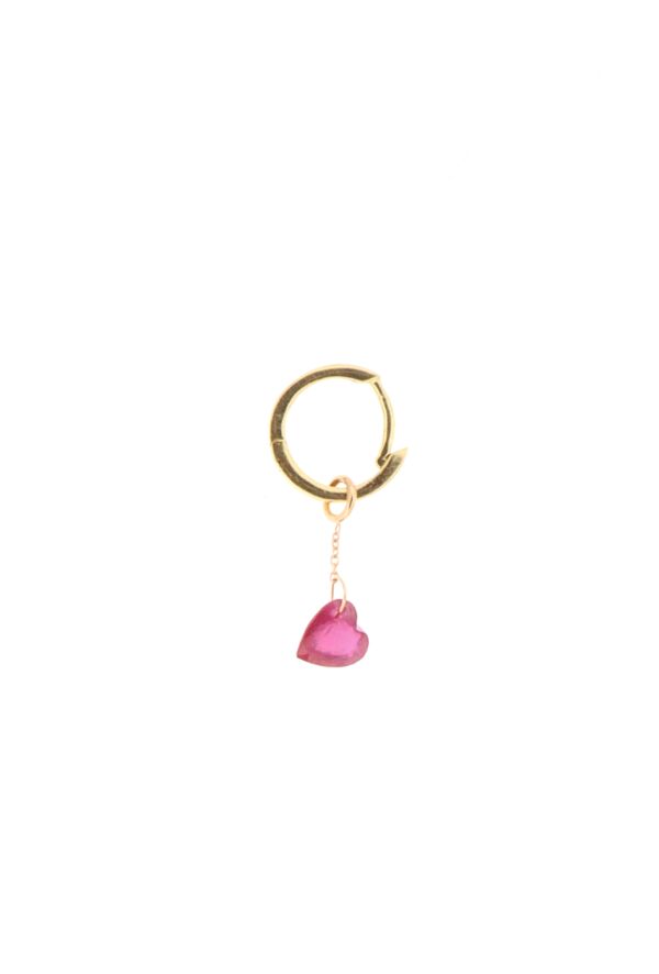 Orecchino a cerchietto realizzato in oro 18 kt, con pendente in oro rosa con un rubino naturale di circa 1 ct.